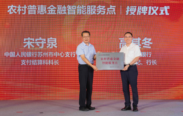 8月18日,“普惠乡村行·共走振兴路”——“金融到家”专项行动启动仪式暨昆山市首家“金融e家”开业典礼隆重举行。昆山市委副书记张月林,中国人民银行苏州市中心支行党委委员、工会主任张蕾,昆山市周市镇党委书记陈建中,昆山市政法委副书记冷怡,昆山市农业农村局局长陈鲁勇,中国人民银行苏州市中心支行支付结算科科长宋守泉;我行党委书记、董事长谢铁军,副书记、行长高其冬出席活动。