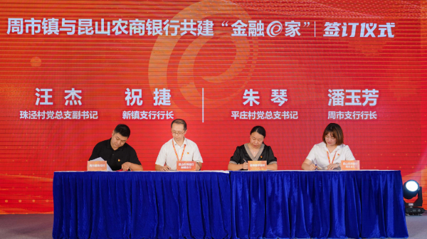 周市镇与昆山农商银行共建“金融e家”签订仪式同时举行,我行将在周市镇增设2家“金融e家”,让更多的周市居民能够就近享受同样的便利。