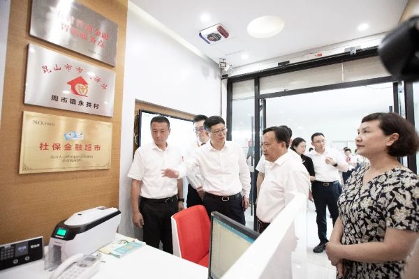中国人民银行苏州市中心支行党委委员、工会主任张蕾表示,昆山一直是全国县域经济发展的排头兵,也是全国农村金融环境建设的先行区域。她指出,“金融e家”是全省首创,集社会公共服务、社保医保等民生服务和全面金融服务于一体,汇聚了人民银行昆山市支行、昆山市行政审批局、昆山市医保局、昆山市人社局,昆山市农业农村局以及昆山农商银行等多方资源,打通了社保、医保、行政审批、农村农业等不同领域的信息系统,实现了数据互通、信息共享,为周市永共村及其周边社区的居民带来了融合金融、市政、党建宣传等一站式服务。